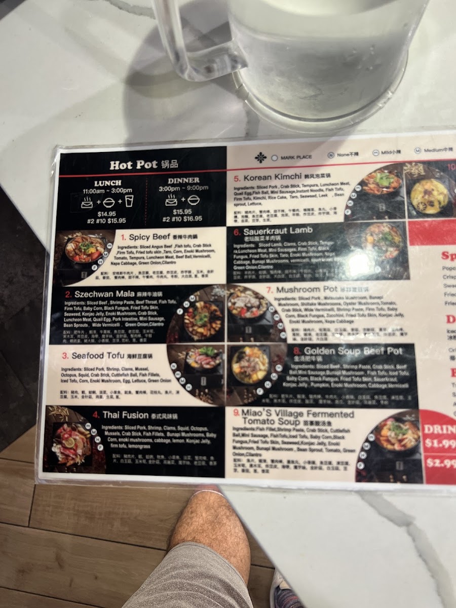 The menu features an enticing assortment of options, including the Sweet & Sour Tomato Hot Pot, brimming with sliced Angus beef, fresh tomatoes, and a medley of vegetables—a comforting choice at just US$23.99. If you're in the mood for something with a tropical twist, the Sauerkraut Fish Pot serves up an enticing blend of fish fillets, shrimp, and flavorful fish cakes, perfect for those who enjoy seafood delights. Don't miss the cold dish offerings, like the refreshing Cucumber Salad, always a crowd-pleaser at US$6.99, providing a zesty lead-in to your hot pot entrée.