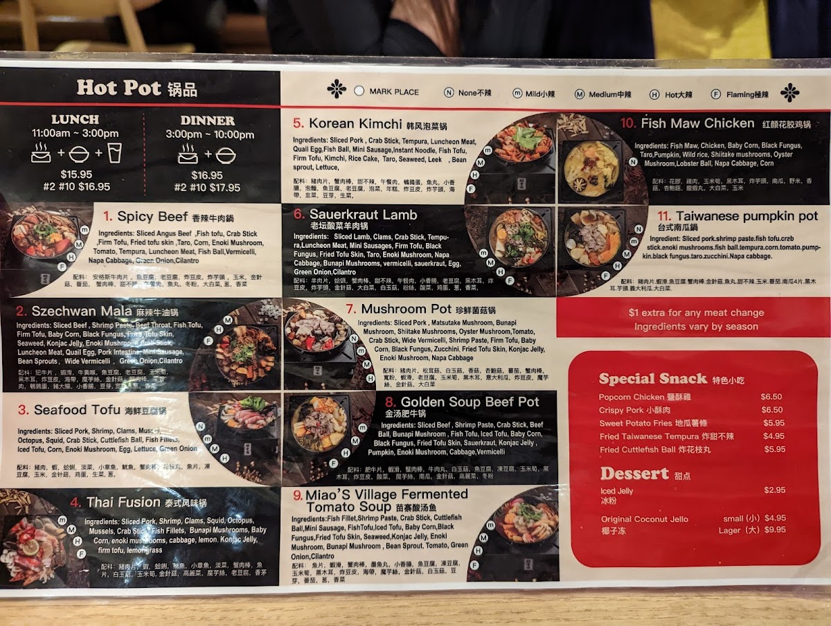 Each visit is enhanced by the ability to customize your spice levels—if you're like Lisa Pot, who adores a fiery kick, you can indulge in the flamin’ spicy broth that truly delivers heat without skimping on flavor. For those on a budget, as Emily Johnson suggests, it's wise to choose carefully—every morsel deserves serious thought, especially when crafting your personal flavor masterpiece with a selection that includes Sliced Pork, Sliced Lamb, and Fried Tofu Skin among many other delights, ranging from US$2.45 to US$6.95.